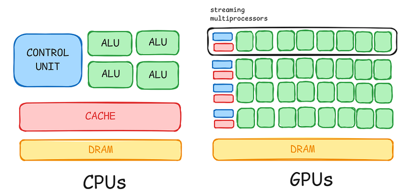 GPU: Fantastic at juggling lots of smaller tasks all at once, like rendering every pixel in an image — without breaking a sweat!